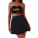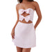 This elegant and playful mini dress is a must-have for a glamorous summer outing. The strapless tube top design and backless cut create a sleek, modern silhouette, while the charming bow detail adds a touch of romantic whimsy. The fit and flare silhouette is both flattering and comfortable, making this a perfect dress if you're looking for a versatile piece that easily transitions from a day at the beach to a summer party.