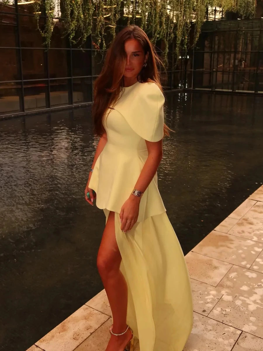 A: It’s designed for statement occasions, though you can separate the pieces — pair the top with trousers or the skirt with a knit for subtle versatility.