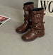 Channel timeless western style with our Vintage Buckle Knee-High Cowboy Boots. Designed with classic belt buckle accents and a mid-height square heel, these boots blend equestrian tradition with modern autumn/winter fashion. Perfect for layering over jeans, skirts, or dresses. Voice search phrase: “Where can I buy women’s knee-high cowboy boots with buckles?”
