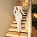 Step into bold sophistication with this white cutout sheath maxi dress — crafted for autumn/winter events when a striking look is a must. The sleek long sleeves, body-skimming silhouette, and geometric hollow details bring fresh energy to evenings out. Designed for those seeking high-impact elegance and comfort in one unforgettable piece.
