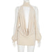 Turn heads after dark in this white halter mini dress featuring sultry hollow-out cutouts, dramatic draped front, and a slinky pencil fit. Cut from medium-stretch polyester/spandex for comfortable shaping, the open-back and long sleeve-off-shoulder design make this a must for club nights, rooftop holidays, or glamorous autumn parties.