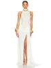 Sculpt modern elegance in this floor-length white turtleneck gown, featuring a daring thigh-high slit and a sleek sheath silhouette. Designed for all-season events, the cutaway arms, body-hugging fit, and natural waist highlight your curves while the slit brings dramatic movement with every step. Perfect if you're searching for a show-stopping evening dress that’s minimal, high impact, and red carpet ready.