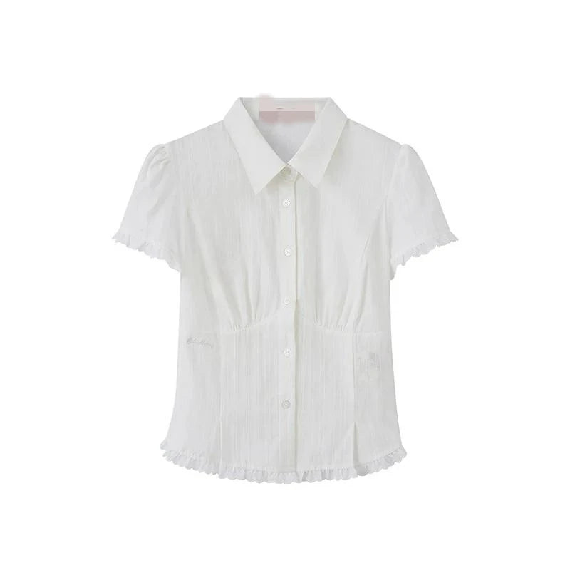 Classic elegance meets subtle detailing in this white lace patchwork blouse. Designed with a ruched bust, delicate lace trim, and a flattering slim fit, it’s perfect for summer outings, casual lunches, and polished day-to-night dressing. Perfect if you're looking for a versatile top that adds a feminine edge to any outfit.