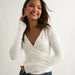 Embrace crisp sophistication and relaxed confidence with this white wrap long sleeve top—crafted for those who love a clean, modern silhouette with a subtle nod to Y2K style. With its chic crossover neckline and slim tailored fit, this top is made for layering, styling, and standing out in any season.