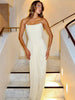 Channel pure sophistication in this white strapless backless gown—crafted for glamorous parties, formal dinners, or modern wedding edits. Its sleek A-line silhouette features gentle ruching at the hip and a floor-skimming hem, while the minimalist neckline and backless design keep the focus on clean lines and confident elegance. If you're looking for a white gown that stands out in elegant spaces or on social media, this versatile piece answers “Where can I find a white strapless evening gown perfect for formal celebrations?”.