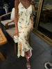 Capture the essence of French summer in this yellow floral satin slip dress—a breezy ankle-length silhouette blooming with delicate floral print and soft lace trim. Fully lined for comfort, this camisole-inspired dress drapes beautifully over the body with slim spaghetti straps, subtle stretch, and a zip closure for a flawless fit. Perfect if you're searching for a romantic maxi that transitions effortlessly from terrace brunch to twilight garden parties.