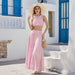 Wear with wedge sandals and a straw hat for a cottagecore look, or add bold earrings and a statement bag for vacation nights out. Ideal for destination parties, tropical brunches, and “what should I wear to a resort?” questions—this yellow set answers with sunny personality and Instagram-worthy polish.